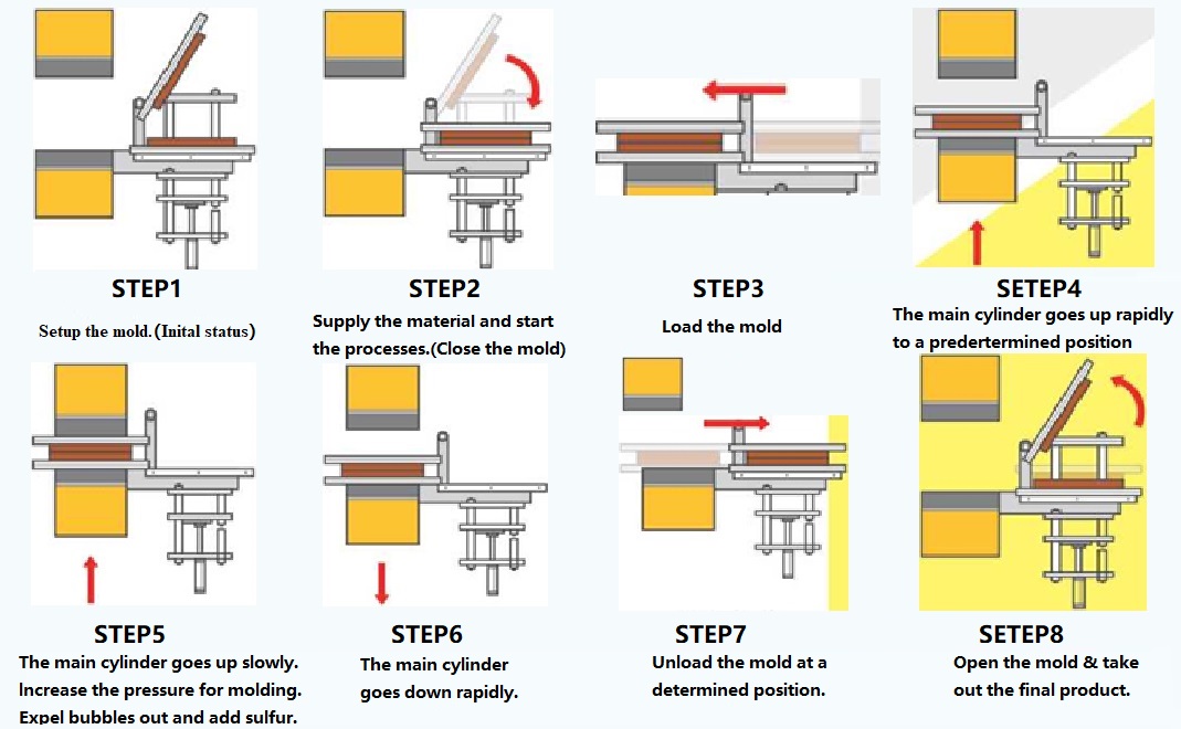 FEATURES ♦High production capability. ♦Low noise level, stable machine. ♦High quality venti lation system. ♦Multiple compression levels. ♦Release bubbles system. OIL PRESSURESYSTEM ♦The inported high-low compressive pump. ♦With group oil passage, it's simple to maintain, it's body & base as a complete unit could keep oil from leaking with GSPT adapting tube of steel pipe could keep oil from keading. ELECTRONICSCONTROL SYSTEM ♦ HMI & PLC control system. ♦With the protection of air leaking & opencircuit devices. ♦The heating plates could keep operation safe. ♦Material feed compression, return, strippingcould be done automatically one time.